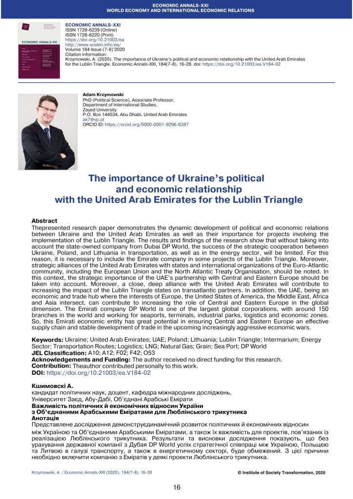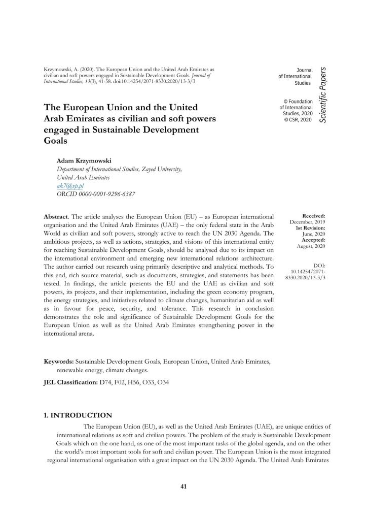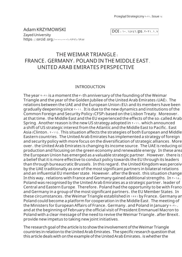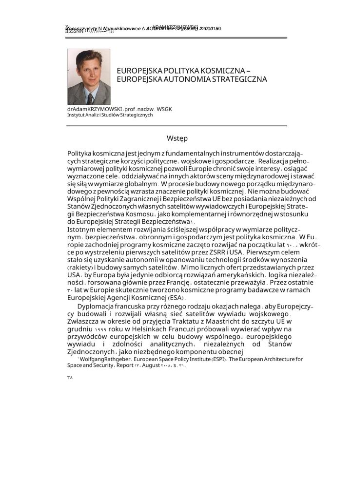 - Krzymowski, A. (2007). Geopolitical position and strategic objectives of the European Union, the National Defence University Scientific Quarterly, No4 2007 (ISSN: 0867-2245), pp. 31-50 (Index Copernicus Master List)