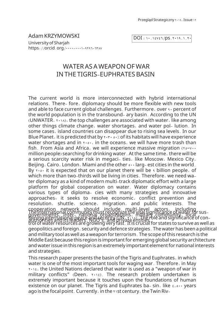 - Krzymowski, A. (2003). Military alliances and agreements as an element of the USA supremacy after word war 2, the National Defence University Scientific Quarterly, No.2 2003 (ISSN: 0867-2245), pp. 130-149 (Index Copernicus Master List)