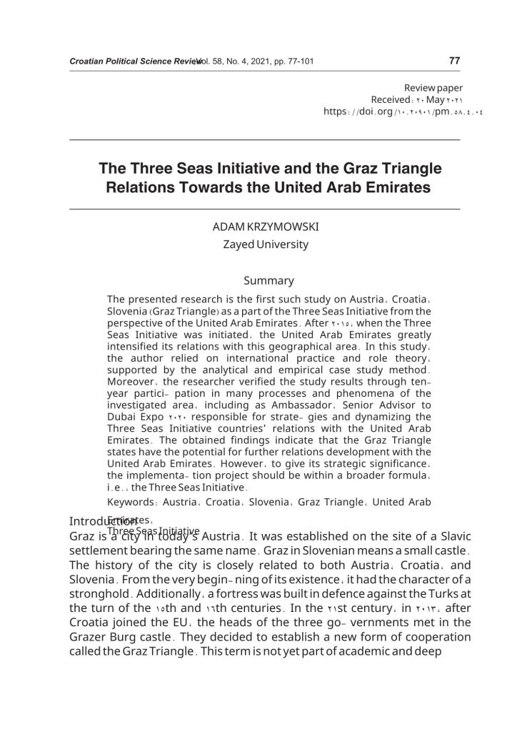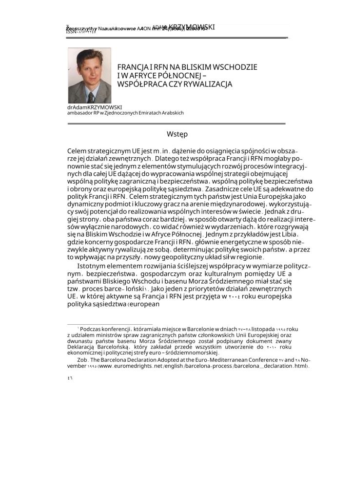 - Krzymowski, A. (2007). Implementation of the Common Foreign and Security Policy towards South-East Europe, Mediterranean and Middle East, the National Defence University Scientific Quarterly No 1 2007 (ISSN: 0867-2245),pp. 111-126 (Index Copernicus Master List)