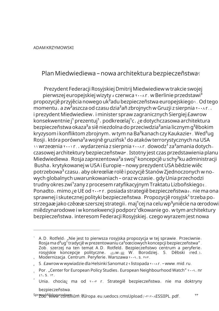 - Krzymowski, A. (2007). Euro-Atlantic security system in the nineties, the National Defence University Scientific Quarterly, No3 2007 (ISSN: 0867-2245), pp. 66-88 (Index Copernicus Master List)