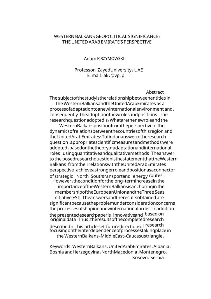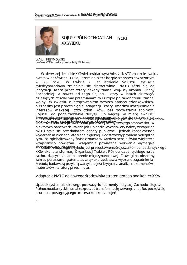 - Krzymowski, A. (2008). American vision of the role of NATO after the collapse of the block (1989-2000), the Journal of the Institute for Western Affairs, Nr.1 2008 (ISSN 0033-2437), pp. 115-130 (Index Copernicus Master List, European Reference Index for the Humanities and Social Science)